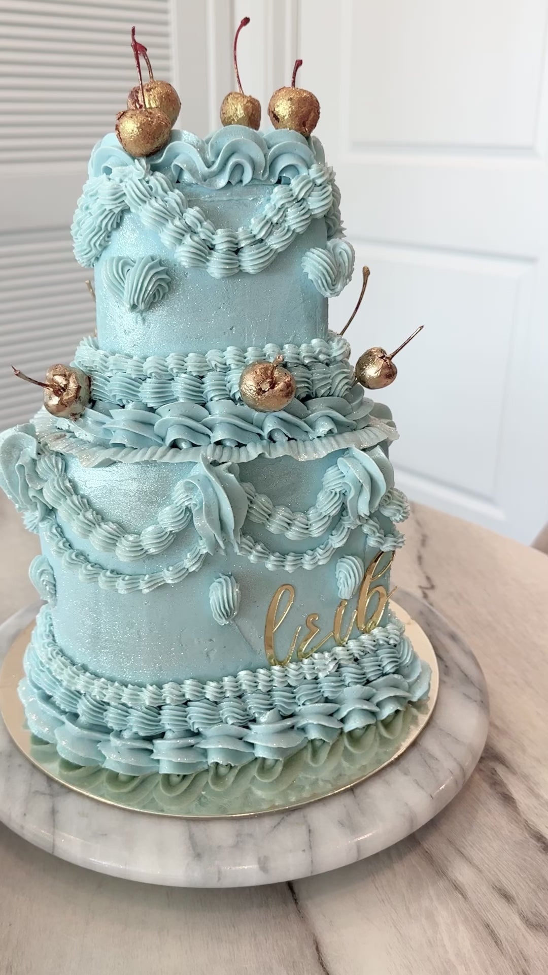 With a choice of our signature chocolate or vanilla for the cake base, these 2-tier beauties are frosted with Swiss Meringue Buttercream in a vintage piping style then finished off with edible glitter. Each Glitter Cake is made to order & baked fresh every time. We use the best ingredients we can get our hands on such as organic eggs & top quality dairy.